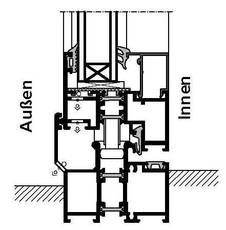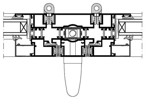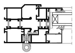 Вертикальный разрез - соединения створок с дополнитеьным профилем |